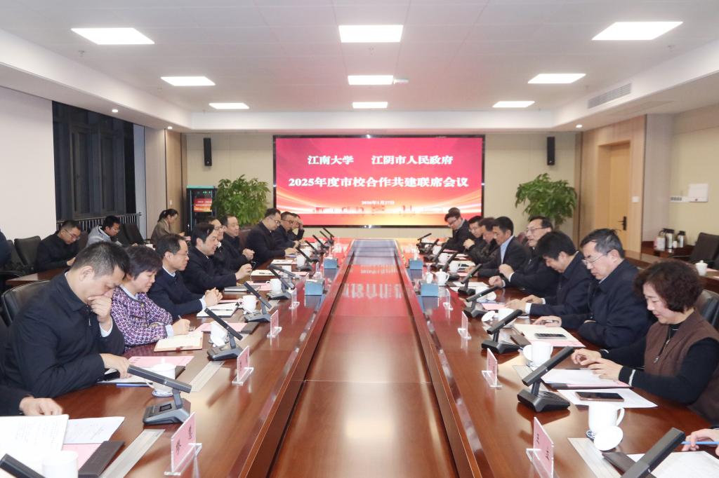 1月27日下午,江南大学与江阴市委、市政府在江阴霞客湾校区行政楼304会议室召开2025年度市校合作共建联席会议。双方齐聚一堂,复盘年度合作成果,共商深化融合大计,擘画未来发展蓝图。无锡市委常委、江阴市委书记方力,...