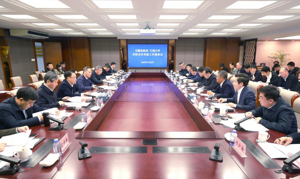 12月29日,无锡市政府与江南大学市校合作共建座谈会在江南大学召开。无锡市市长蒋锋与学校党委书记吴正国、校长陈卫共商合作、共话发展。无锡市副市长张镇,市政府秘书长陈寿彬;校党委副书记倪松涛,副校长马鑫、刘龙、金科出席会议。吴正国对长期以来关心支持江南大学建设发展的无锡市委、市政府表示感谢。他指出,“十四五”时期市校双方始终坚持“名城名校、彼此赋能”的合作共识,学校紧扣“教育强国,江南何为”和“服务...